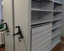 Мы разработали, изготовили и установили индивидуальное проектное решение, объединив в одном пространстве сразу несколько типов стеллажных систем: для документации установили металлические шкафы с дверями и замками — для защиты от пыли, света и доступа посторонних лиц. Для размещения живописи использовали стеллажи серии СГС с гребёнкой на два уровня — аккуратная и безопасная вертикальная фиксация произведений. Для остальных категорий экспонатов применили передвижные стеллажи серии Л с полками и выдвижными ящиками, уместив в одном блоке экспонаты с разными габаритами.