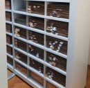 Разработали по индивидуальным размерам и установили ячеистые передвижные металлические стеллажи.