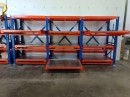 Изготовили и установили тяжеловесные стеллажи серии Slide с 3-мя полкам, нагрузкой до 1400 кг на каждую. Конструкция адаптирована под размеры и вес оборудования заказчика. Полки оснащены механическим приводом со съёмной рукояткой. А также встроенным механизмом защиты от одновременного выдвижения уровней.