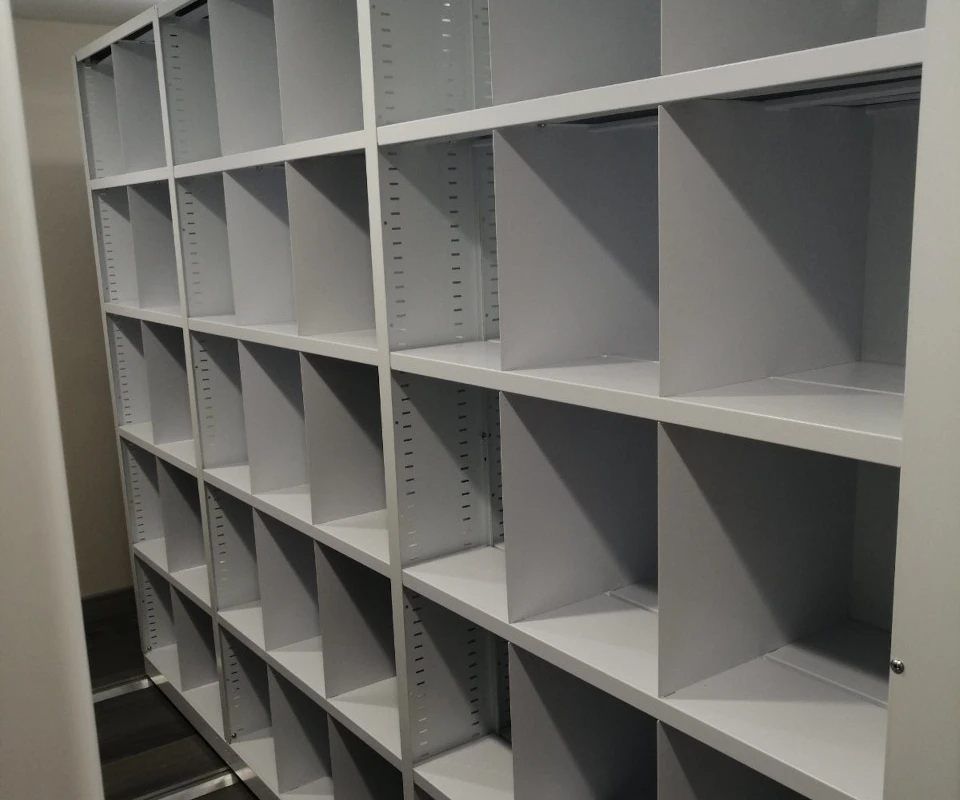 Разделители делят полку стеллажа на ячейки хранения.